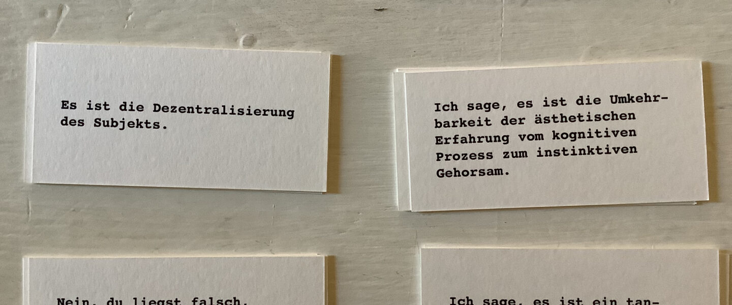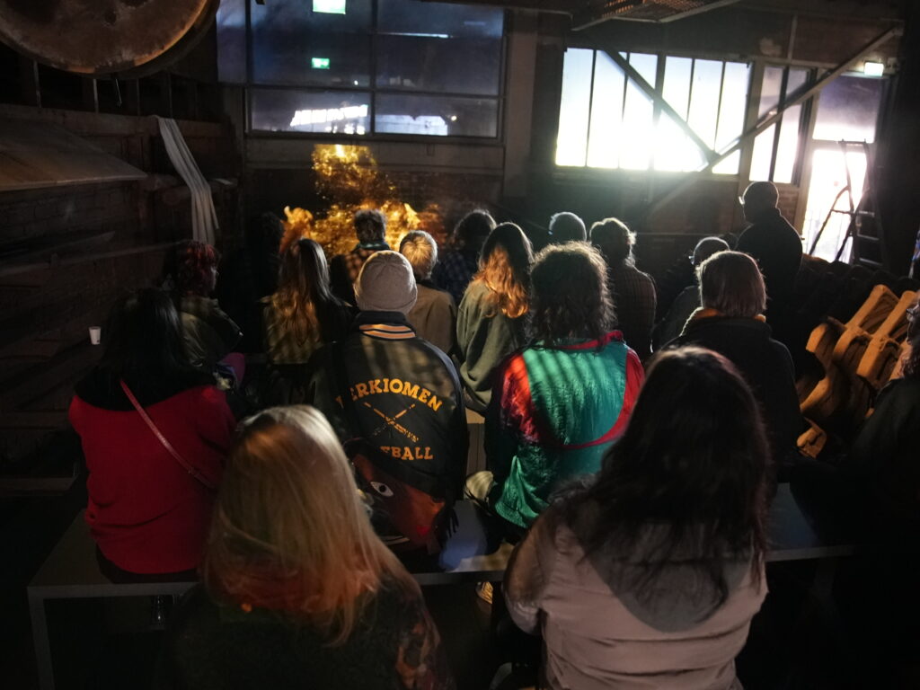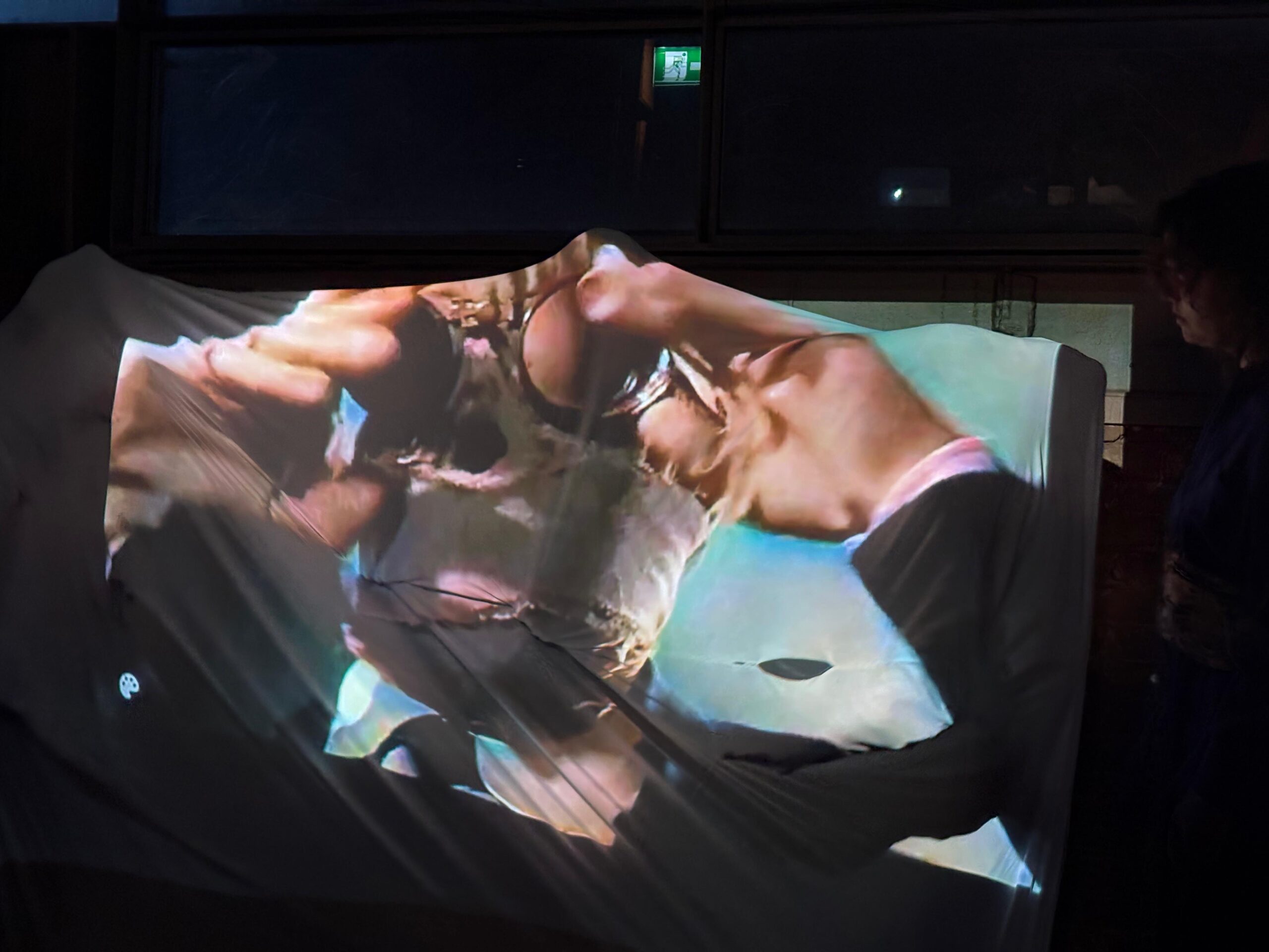 Un film di fantascienza viene proiettato su uno schermo-scultura animato dalla presenza di un piccolo gruppo di performer. Lo schermo distorce le immagini, conferendo loro l’aspetto di un corpo in movimento, simile alla forma di un animale. In questa fantasia di un cinema vivente, un coro di voci pone domande che rimangono senza risposta. La performance si è svolta in occasione della mostra Angry Textile, Weltkulturerbe Völklinger Hütte, Völklingen, 2025, a cura di prof. Georg Winter, promossa da Europäischen Zentrums für Promenadologie Völklingen, Spekulativen Nomad*innen, HBKsaar, Weltkulturerbe Völklinger Hütte. Performer: Amrei Treis, Thelio Rabin-Laguens, Samuele Lascialfari.